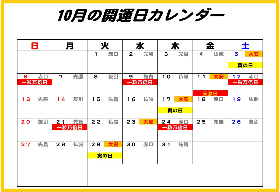 2024.10.01チケット キャビン【宝くじ情報】10月開運日カレンダー☆