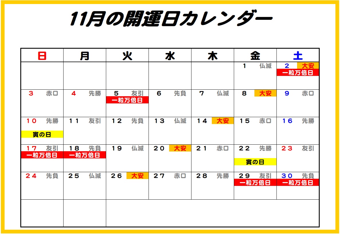 2024.11.01チケット キャビン【宝くじ情報】11月開運日カレンダー☆