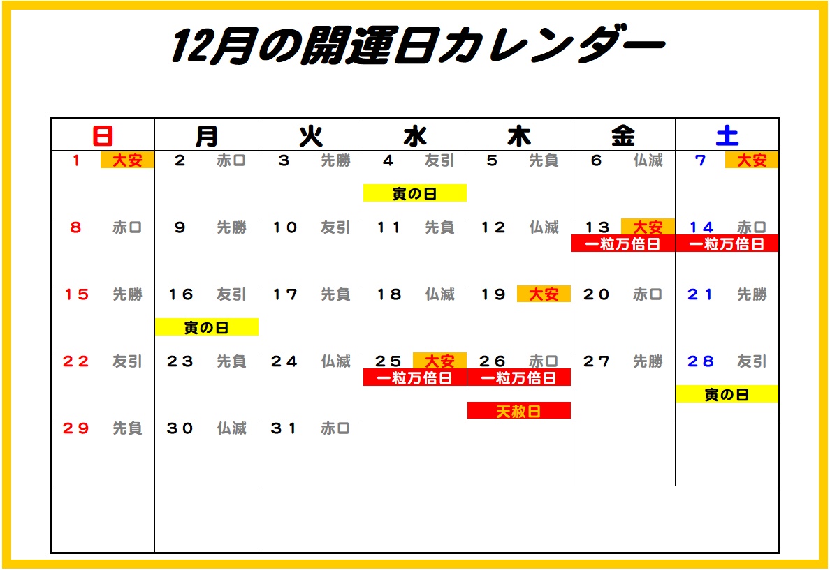 2024.12.01チケット キャビン【宝くじ情報】12月開運日カレンダー☆