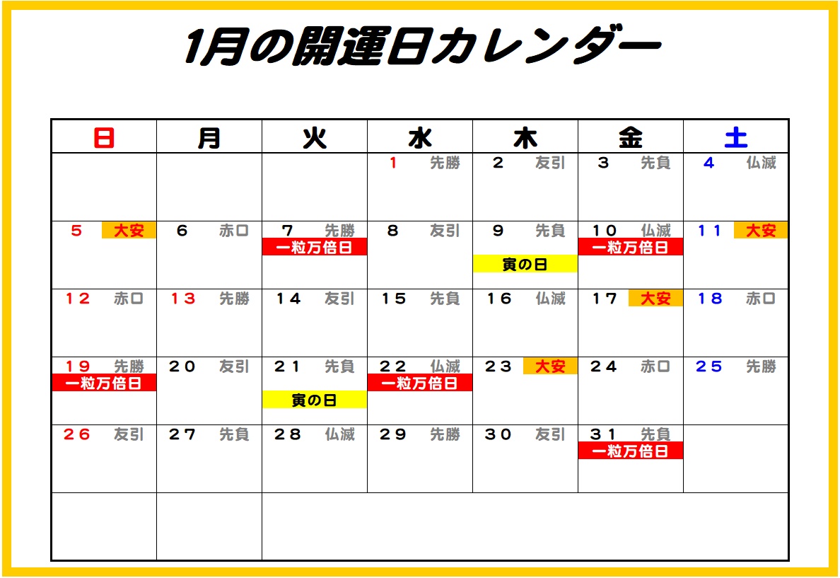 2025.01.02チケット キャビン【宝くじ情報】1月開運日カレンダー☆