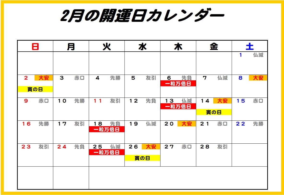 2025.02.01チケット キャビン【宝くじ情報】2月開運日カレンダー☆