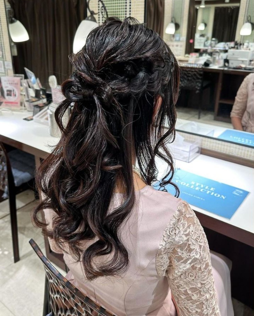 ※巻き髪などのダウンスタイル。ピンやゴムを使わないナチュラルなスタイル