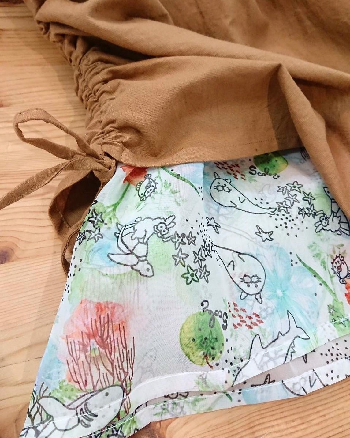 裾の紐をキュっと結ぶと可愛い色合いの海の生き物達がチラ見え〜♬