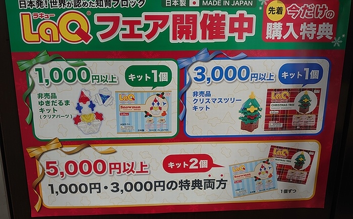 2021.11.29 書籍・文具ブックファースト 知育ブロック「LaQ」フェア開催 #期間限定 #ギフト #クリスマス #LaQ ブックファーストクリスタ長堀店では、お子様と一緒に作りながら大人も楽しめる知育ブロック「LaQ」のフェアを開催中!今なら「LaQ」1000円以上お買上げで「ゆきだるまキット」、3000円以上で「クリスマスツリーキット」、5000円以上で上記2個をプレゼント!この機会をお見逃しなく!12/25まで。 SHARE 表示価格は記事公開日時点のものです。 このショップのニュース一覧へ 書籍・文具ブックファースト 営業時間10:00-22:00 (日・祝11:00-22:00) 電話06-6282-2210 エリアバリエタウン SHOP PAGE RECENT NEWS 2025.07.26 ブックファーストタイトーくじ Coca-Colaが入荷しました。 2024.03.11 ブックファーストブックファーストの新生活応援アイテム 2022.12.13 ブックファーストブックファーストのHEARTFUL CHRISTMAS Gift Selection 2022.10.07 ブックファーストブックファーストの秋のおすすめアイテム