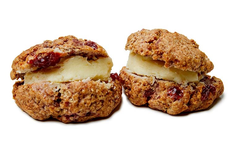 バターに卵、ドライいちごをふんだんに混ぜたスコーンに、風味豊かなバタークリームでつくったクリームをサンド。サクサクの生地にクリームやフルーツを挟む、クラシカルなアメリカンショートケーキをイメージしました。