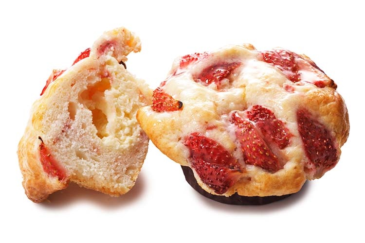 摘みたてのいちごを一面に散らして焼き上げた、果実のジューシーな味わいを楽しめるマフィン。ふっくらおいしい生地にはいちごジャムをマーブル状に練りこみ、真ん中にクリームチーズを忍ばせました。
