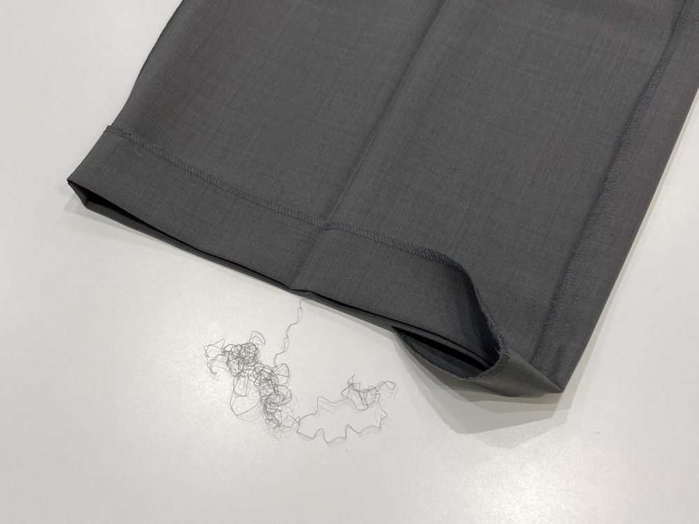 また、裾がほつれてくるのが“イヤ“という方には、ステッチ仕上げに変更することもできます。商品をお持ちになり、スタッフまでご相談ください。(表にミシン目が見えるお仕上げとなります。)