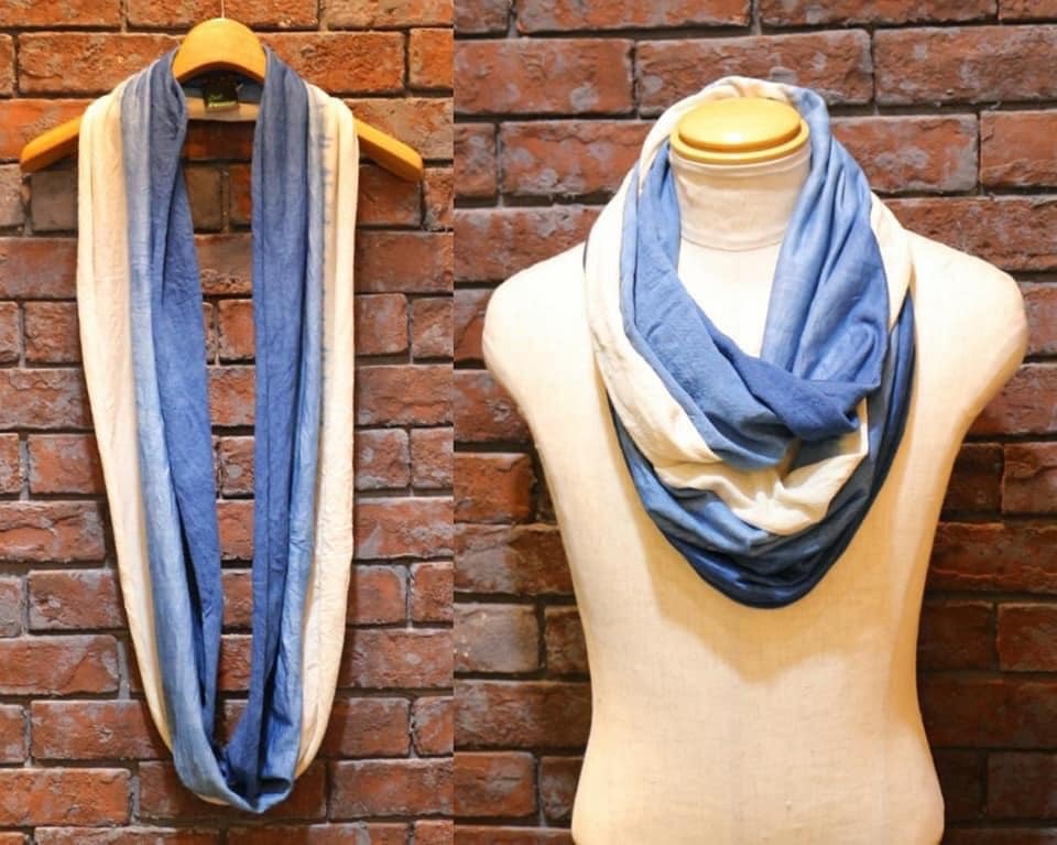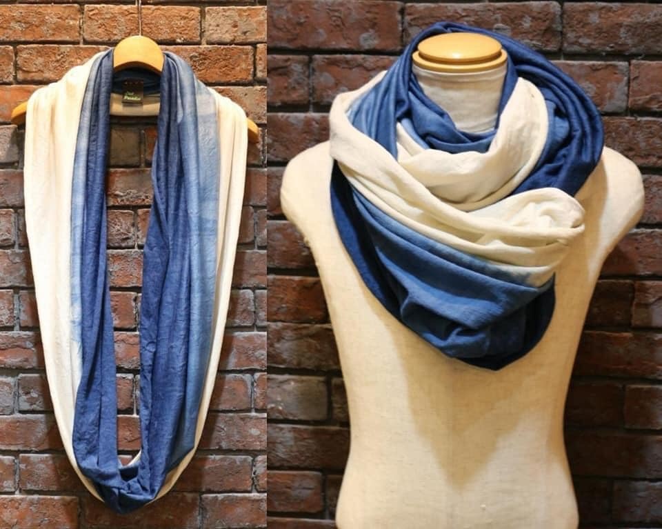 独自の藍染めスヌードアレンジを