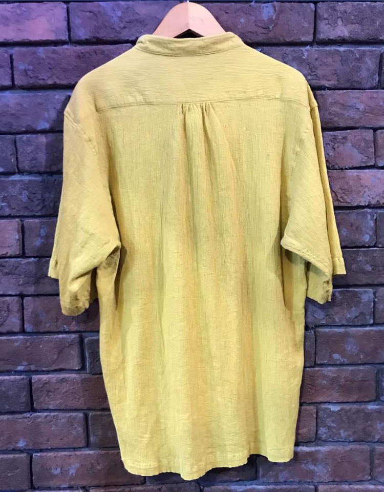 マスタードカラーの楊柳シャツの