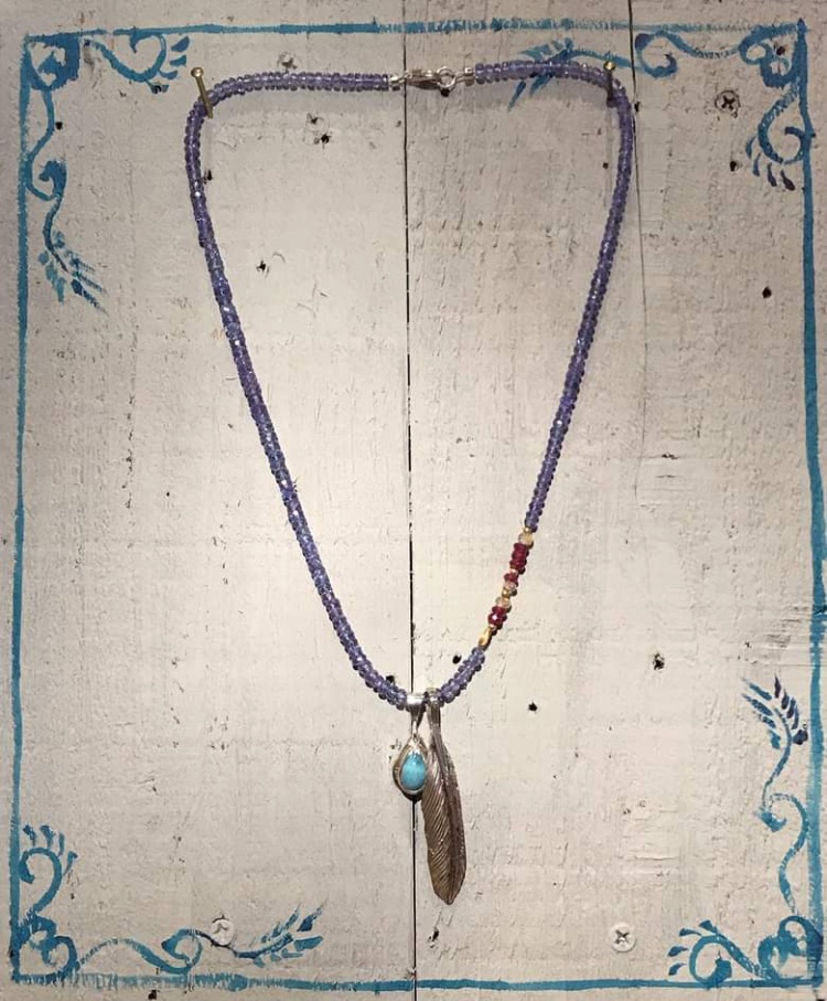 タンザナイトとフェザーでタンザニアの夜空をイメージし、ラリマーを海に見立ててタンザニアにある世界で一番美しい海とも言われるザンジバル島の夜をイメージした組み合わせで組んでみました