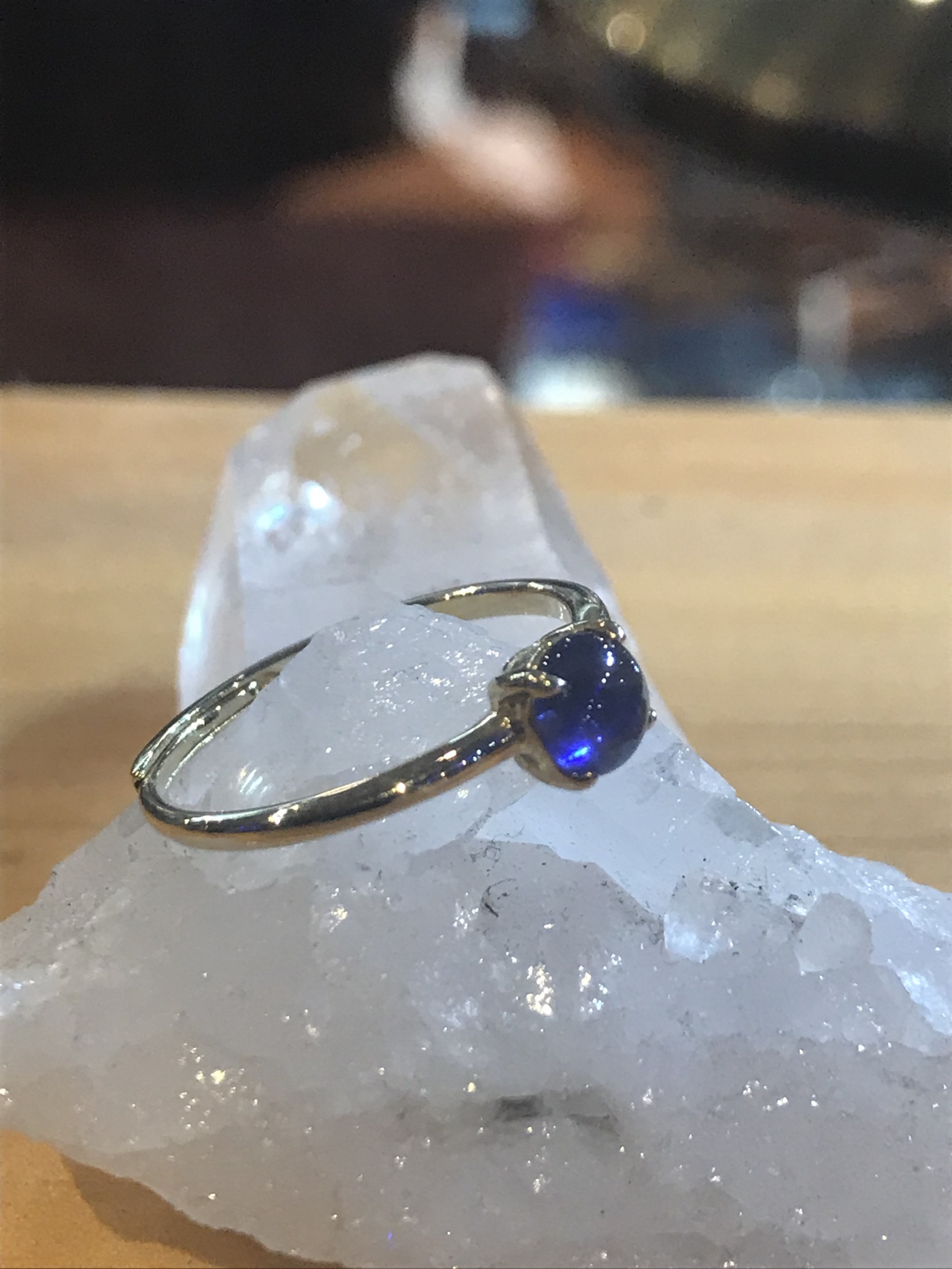 そんなサファイアをゴールドの台座にあしらったリングはゴールドの高級感と鮮やかなサファイアのブルーが合わさりお互いを高めあっています