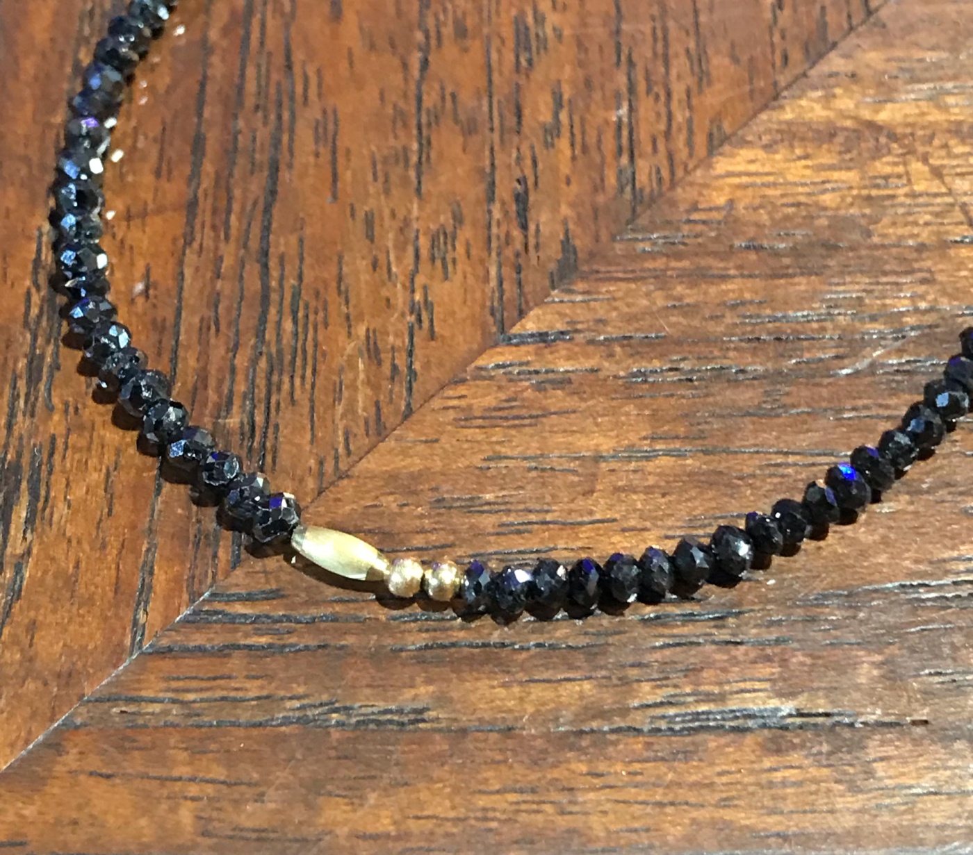 そんなブラックダイアモンドとゴールドのビーズを合わせる事でブラックダイアモンドのシャープな輝きとゴールドの高級感ある輝きが相まって独特の雰囲気を醸し出しています