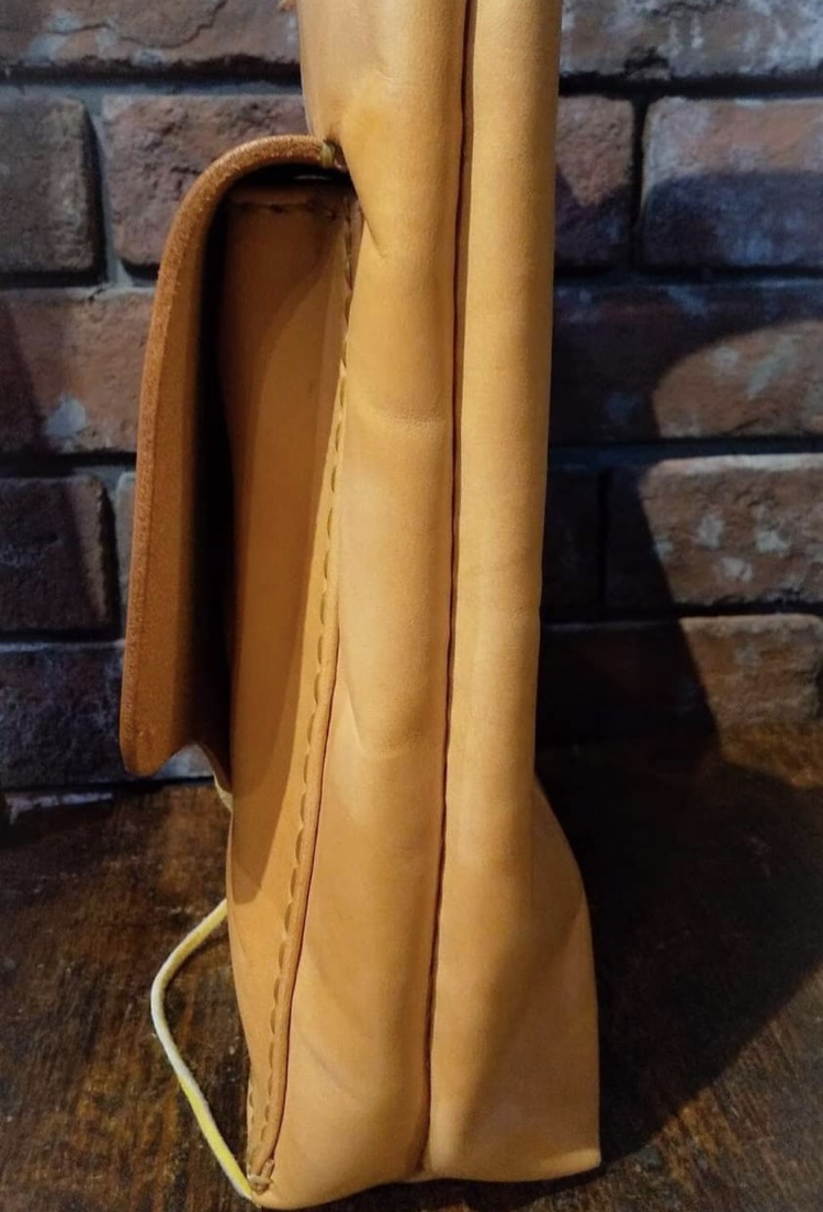 手提げ部分も確りとした牛革の一枚モノで出来ており、手で持っても床に着かず、肩にも掛けられる絶妙なサイズになっています。