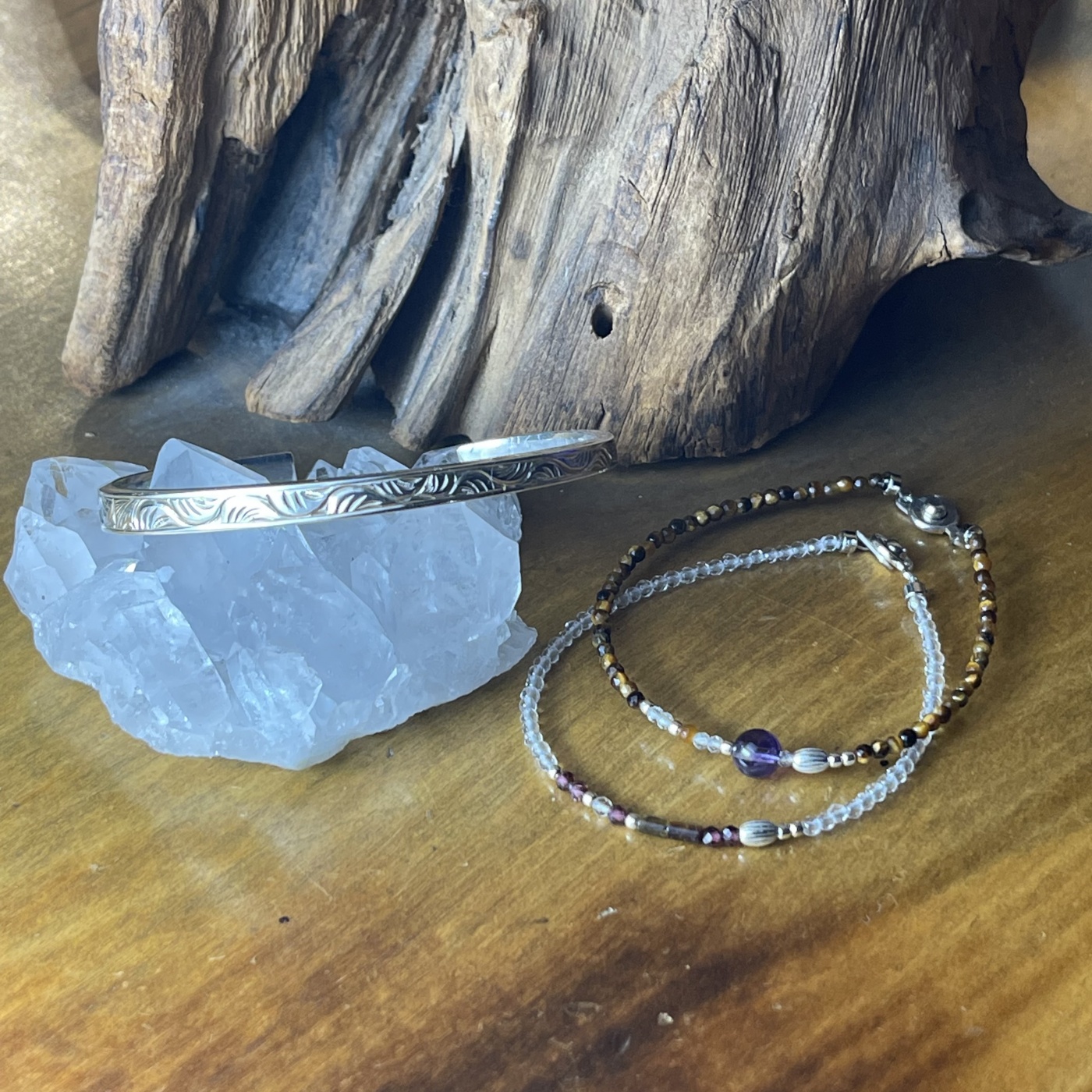 細身のデザインですのでビジネスシーンにも着けやすく時計やジュエリーとの重ね付けも◎(*^^*)