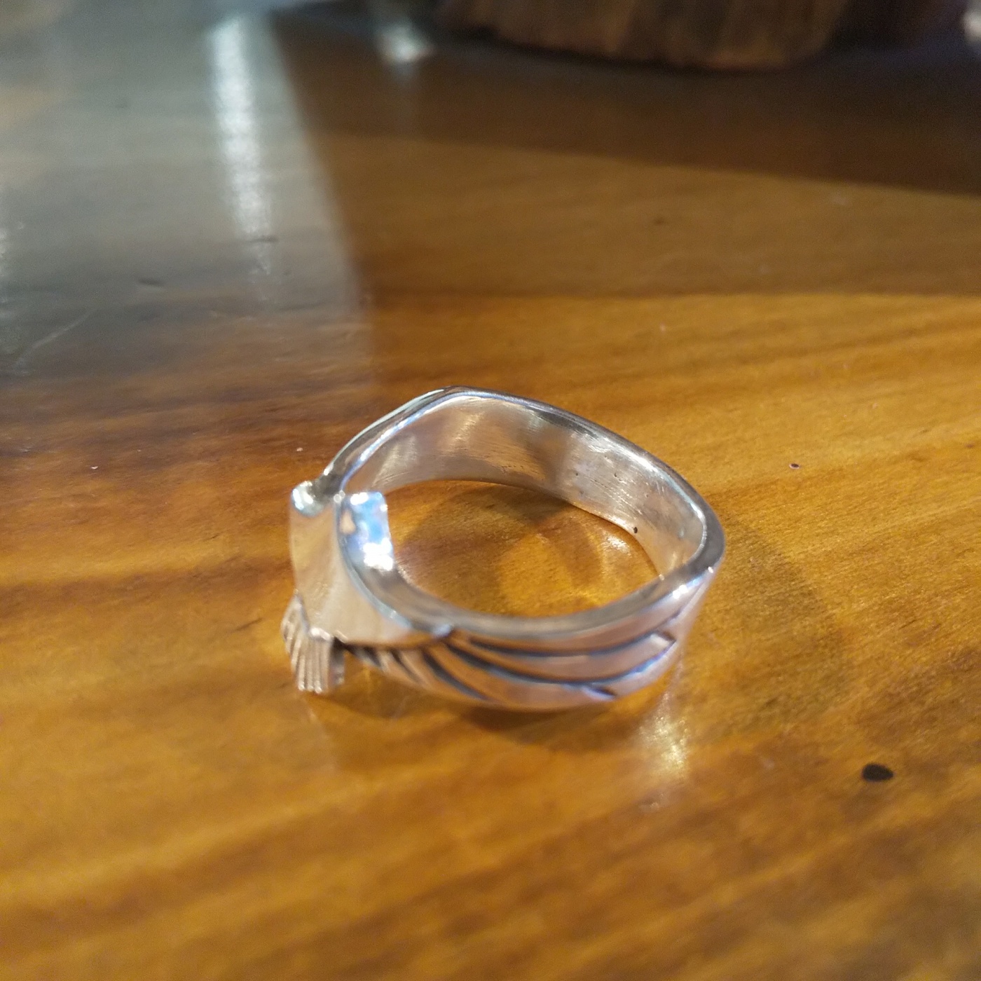 インディアンジュエリーのモチーフとしてイーグル(鷲)は、よく使われています。ネイティブアメリカンの多くの部族で、父なる空からの使いとしてメッセージをもたらすとされ、神聖な生き物とされています。空高く飛ぶことが出来ることから、物事を全体的に見て判断を下すことが出来ると考えられ、名声やリーダーシップを意味しています。
