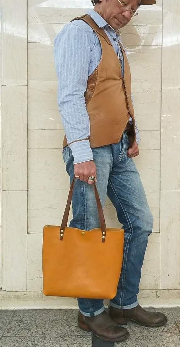 マチを確り取っているので、かなりの量が入ります。身長150cmの女性が肩に掛け、身長170cm男性が手に持ってこれ位のサイズ感です。