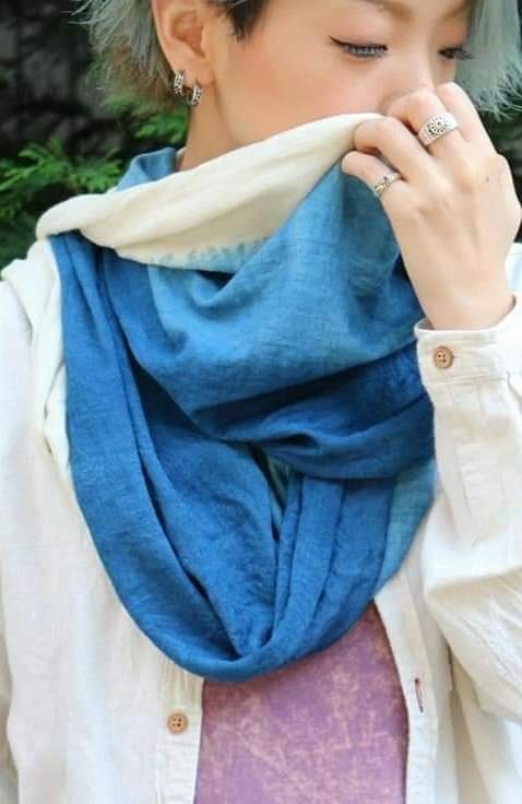 藍染めには紫外線防止効果もあるので、実際薄着になり首元の日焼けなどの心配が出てくる季節にも、ご使用くださっているお客様もおられます(^^)