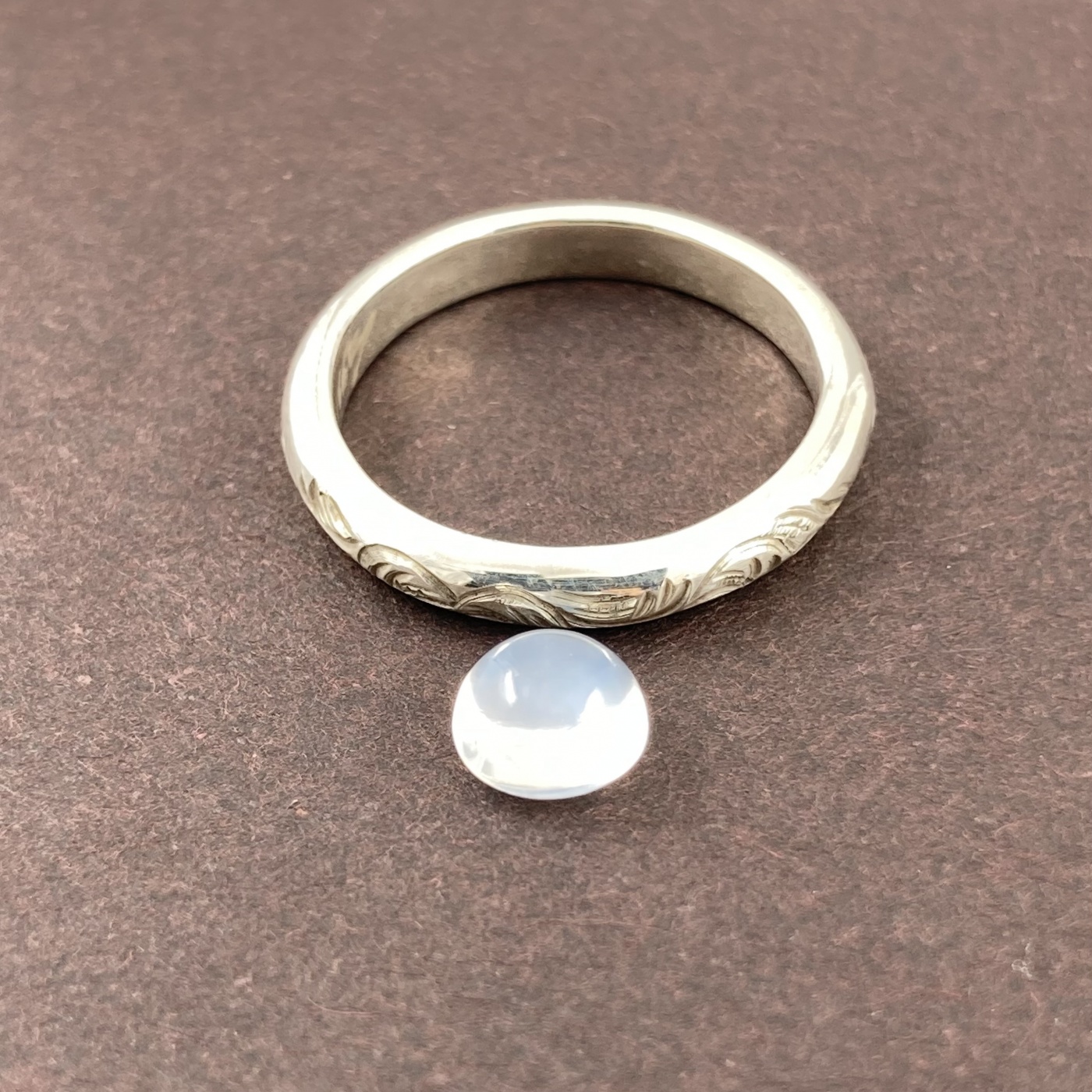 リングやバングルにも素敵ですがウォータードロップのペンダントに仕立てて水面に写った月を表現してみるのも面白いかと思います。