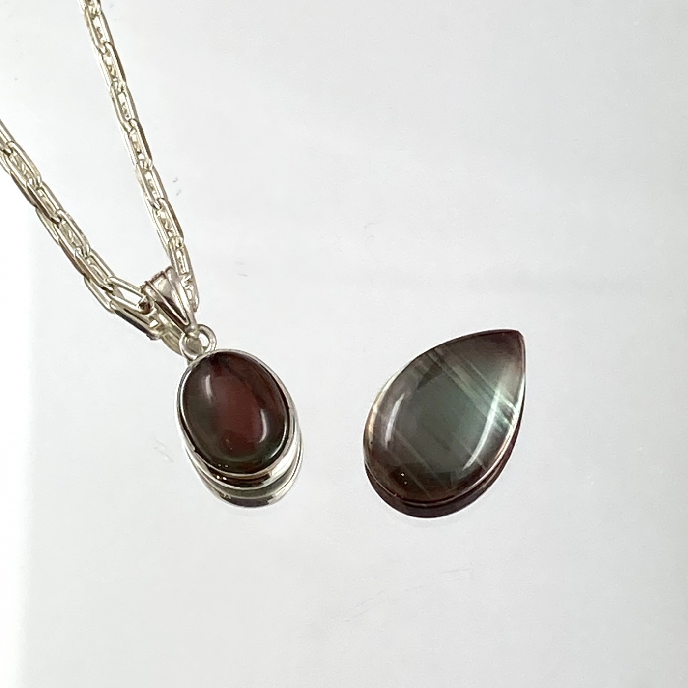 ペンダントトップは逆に赤色をベースに角度を変えると緑が映り込み見るものを魅了する美しさです。