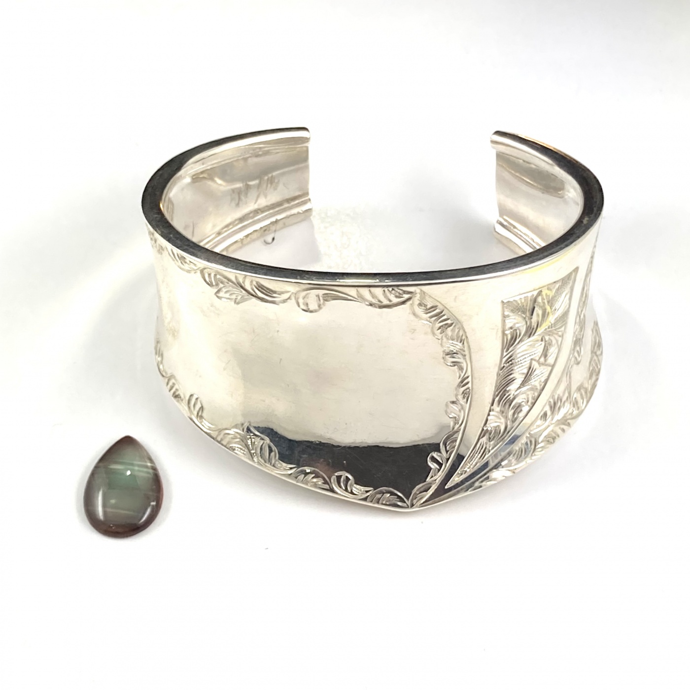 そんなアンデシンはシルバーのバングルに合わせてシルバーの輝きに赤と緑のカラーを合わせてそれぞれの美しさの対比を楽しむのも良いかと思います。