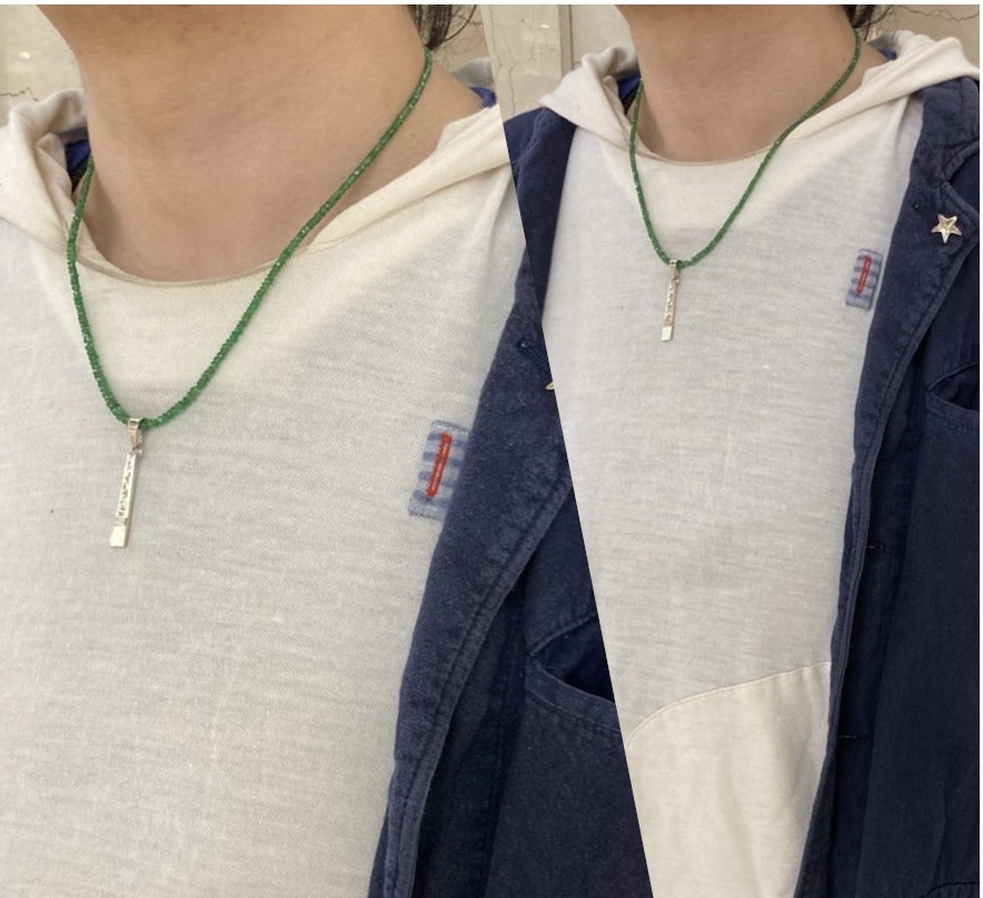 もちろんペンダントトップを付けての着用も新緑の様なグリーンがペンダントをより映えて見せてくれるかと思います。
