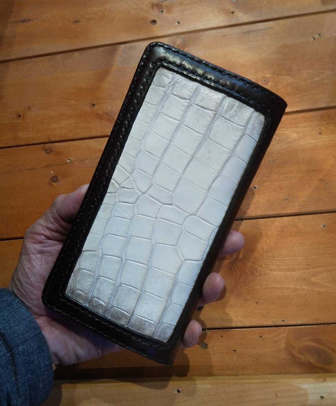 高級感漂うdayscraft slim wallet(マホカラー×ヒマラヤクロコ)。自分へのご褒美として奮発してみませんか?