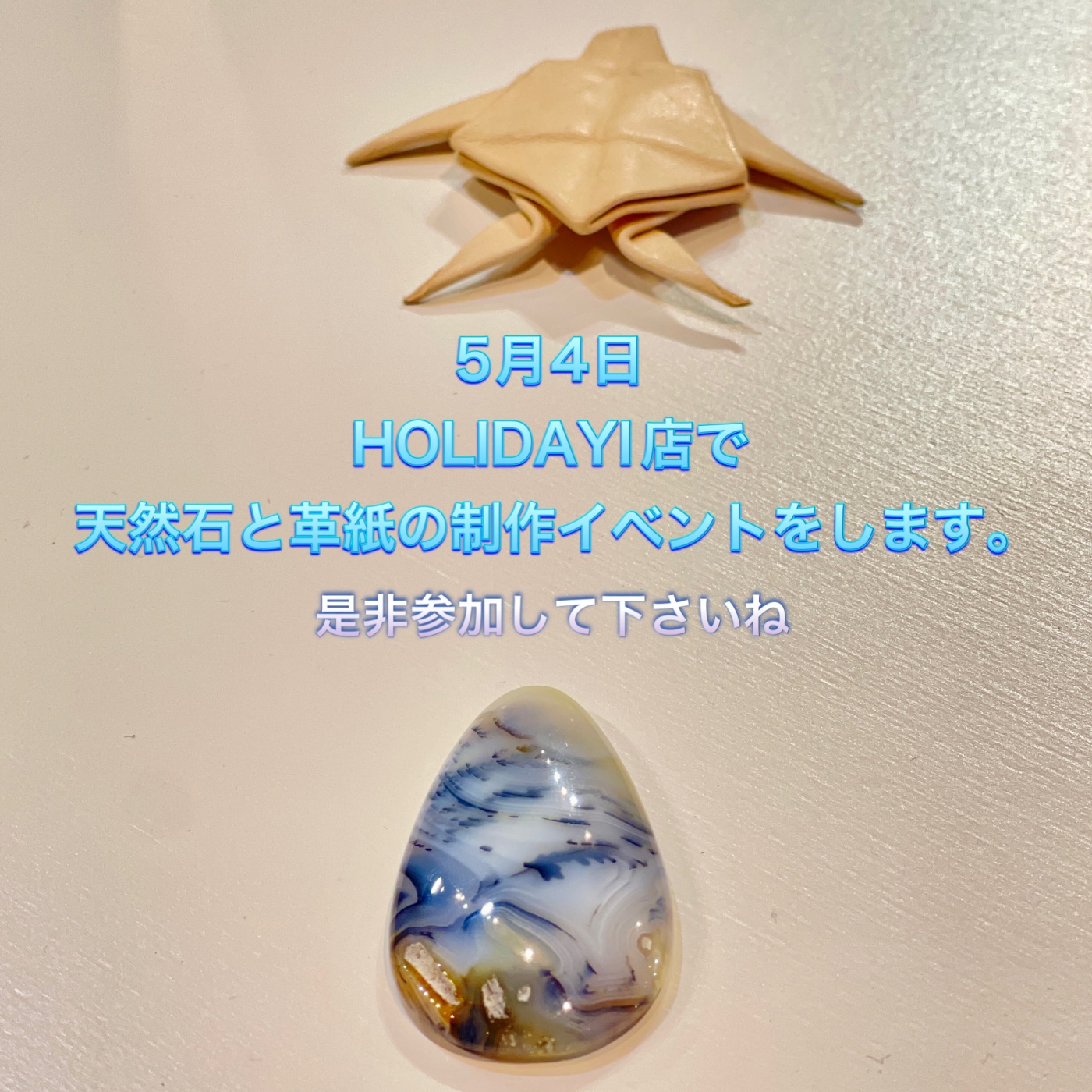 5月4日HOLIDAYIで天然石と革紙を使った制作イベントをします。
