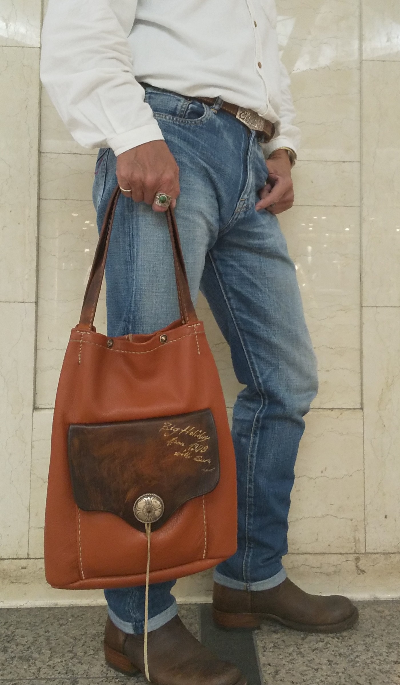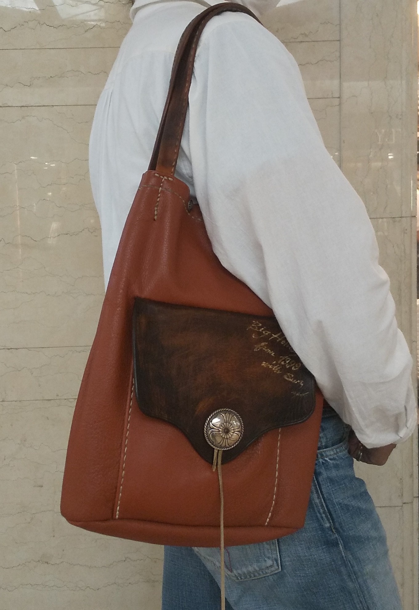 本体のクロム鞣しと、フロントポケット・ベルト部分の渋鞣しヴィンテージ加工の両方を楽しめるdayscraftのトートバッグ。拘りの貴方にお薦めです。