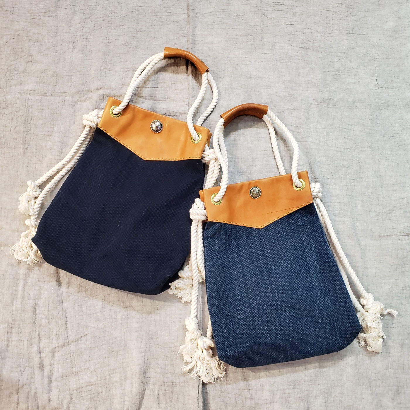 ※本体横のロープの結び目を調節して頂くことで、持ち手の長さを変えれますので、手持ちでも肩掛けでも、ご自身の好みに合わせてお使い頂けます。