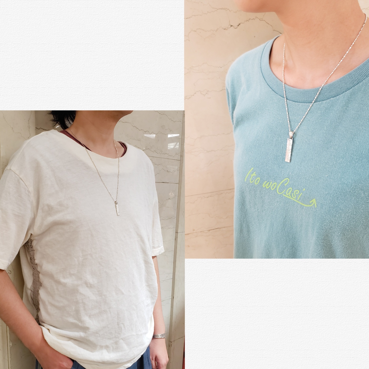 1枚目の写真のように、チェーンの種類が変わるだけでも雰囲気を変えれるので、チェーン選びも楽しんでくださいね(^^)
