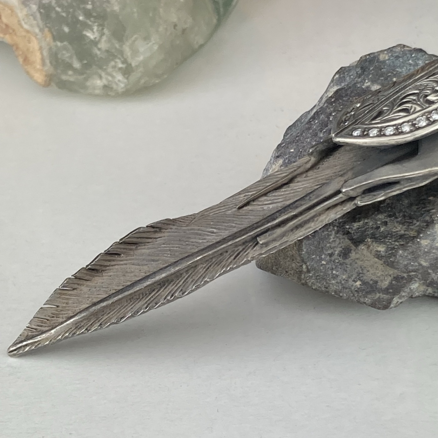また、クワガタの一部分やクワガタの乗っているフェザーなどの部分は黒仕上げになっていて立体感と重厚感を持たせています。