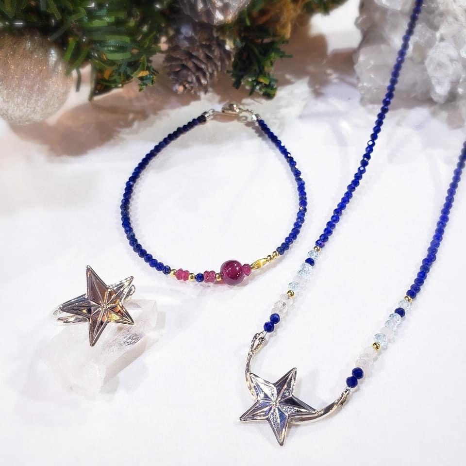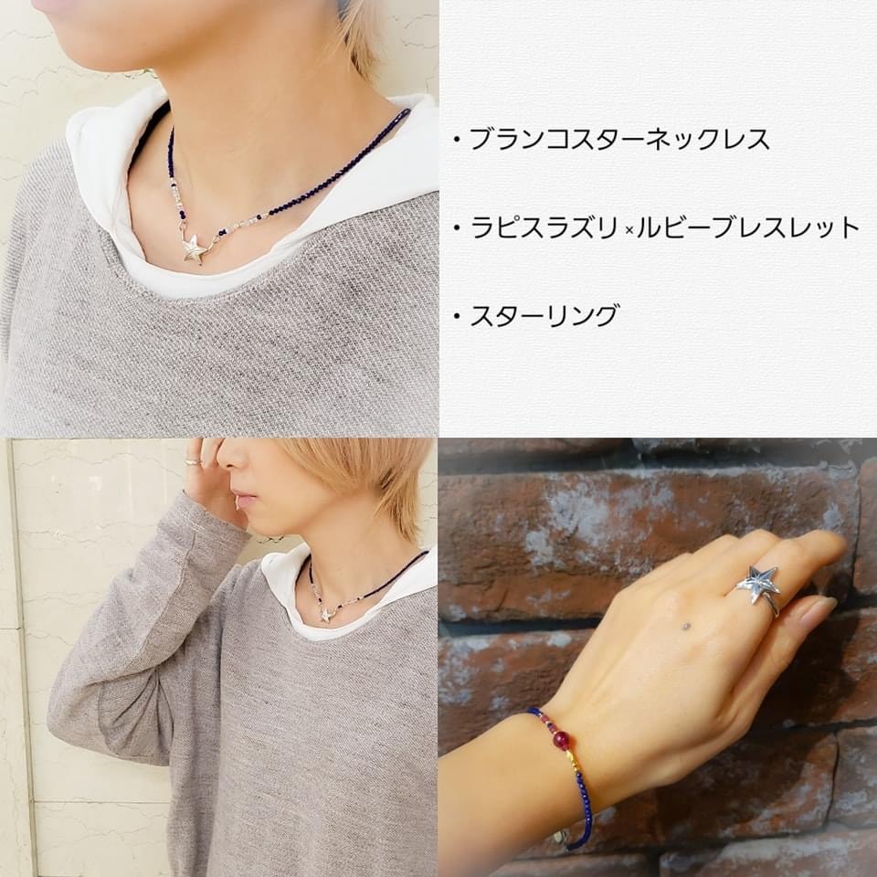 ブレスレットとリングもラピスラズリとスターのリングで合わせてセットコーディネートもおすすめです。