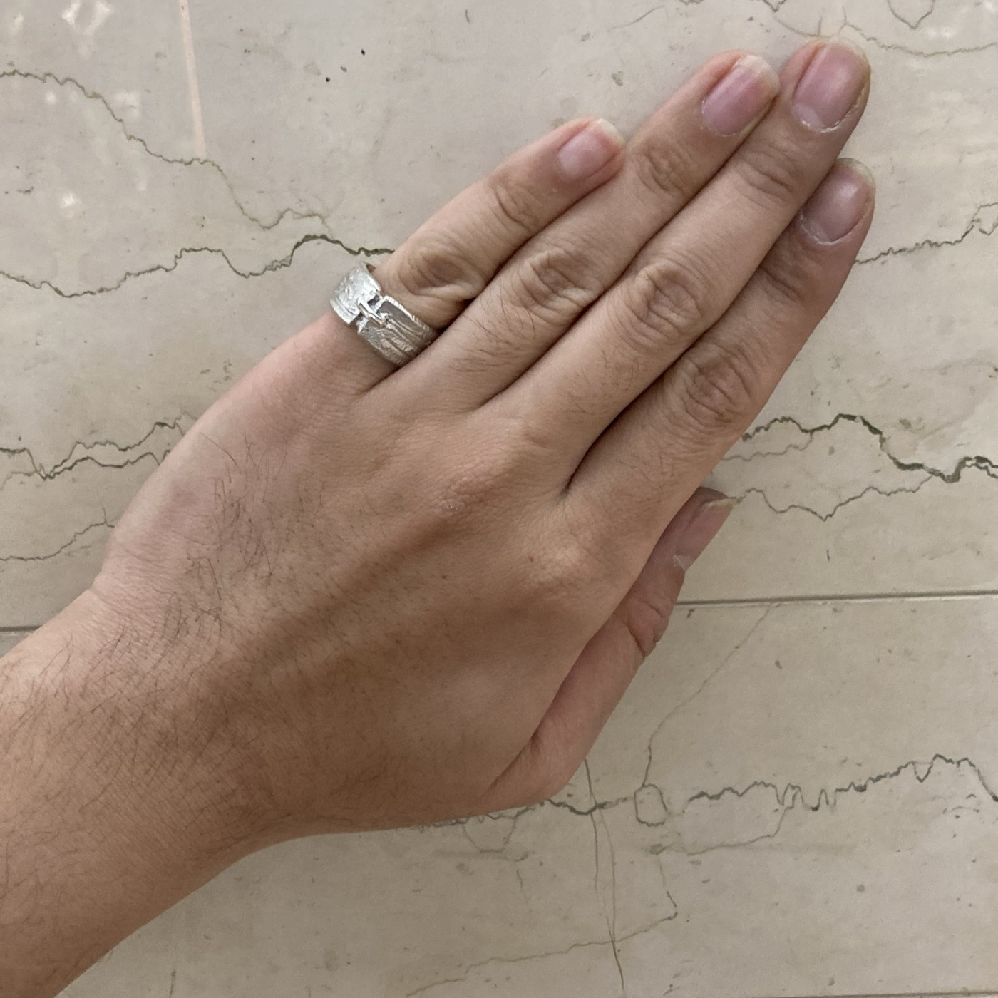また、男女問わずコーディネートしやすいボリューム感で様々なファッションに取り入れて易いリングになっております。