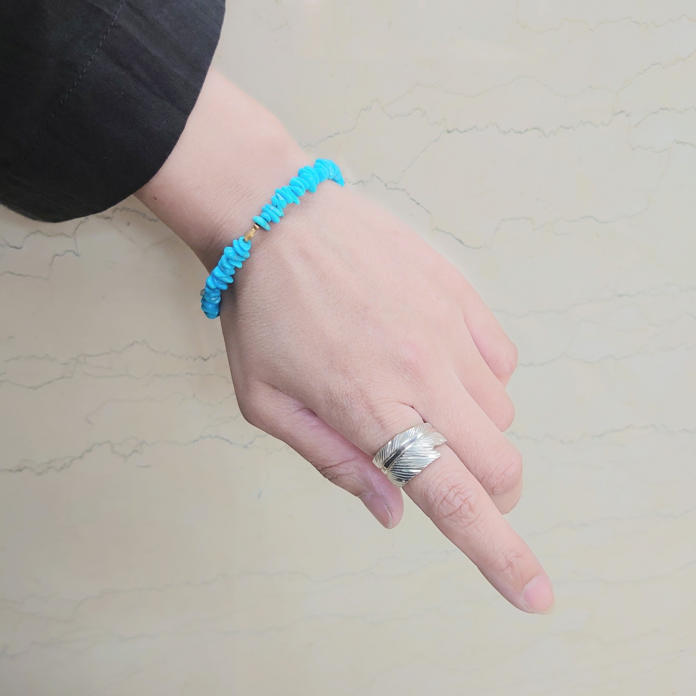 着用写真は大空に羽ばたく翼をイメージしてスリーピングビューティーターコイズブレスレットと合わせてます。