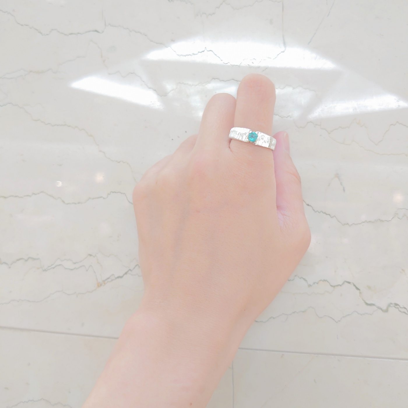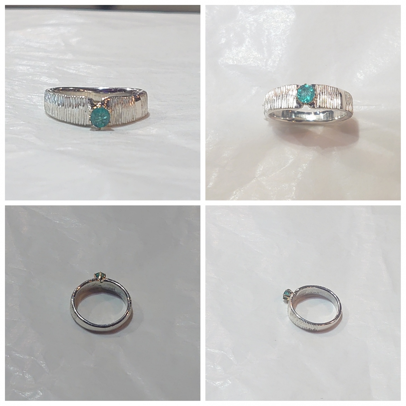 灯火リング特有の炎が揺らめくような輝きとグランディディエライトのキラキラとした輝きの対比が楽しめる素敵なリングが出来上がりました(*^▽^)!