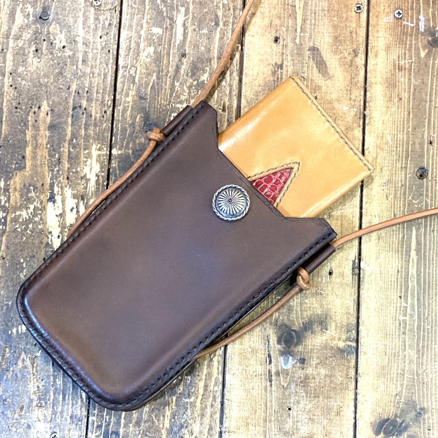 こちらもショコラカラーが採用されていてシルバーのコンチョとコンチョに施されたガーネットとのバランスが大人な雰囲気を醸し出しています。