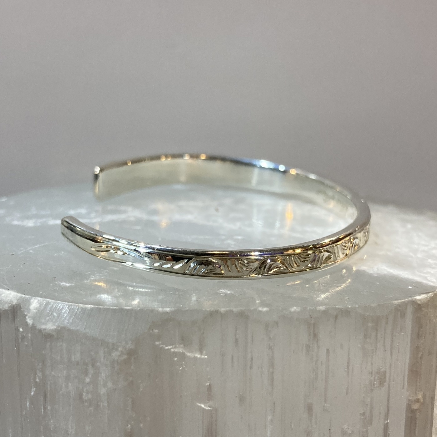 当店人気のブライドカットシリーズと灯火シリーズが融合した作品でゆらゆら揺らめく様な彫りとラインの輝く彫りが施されています。