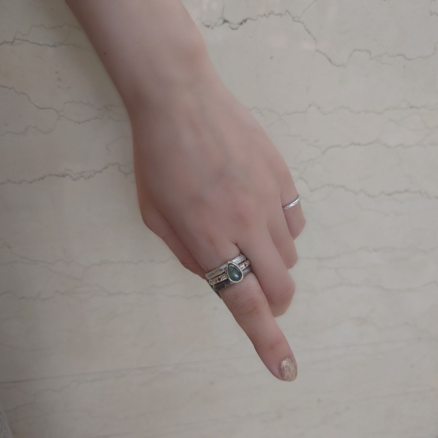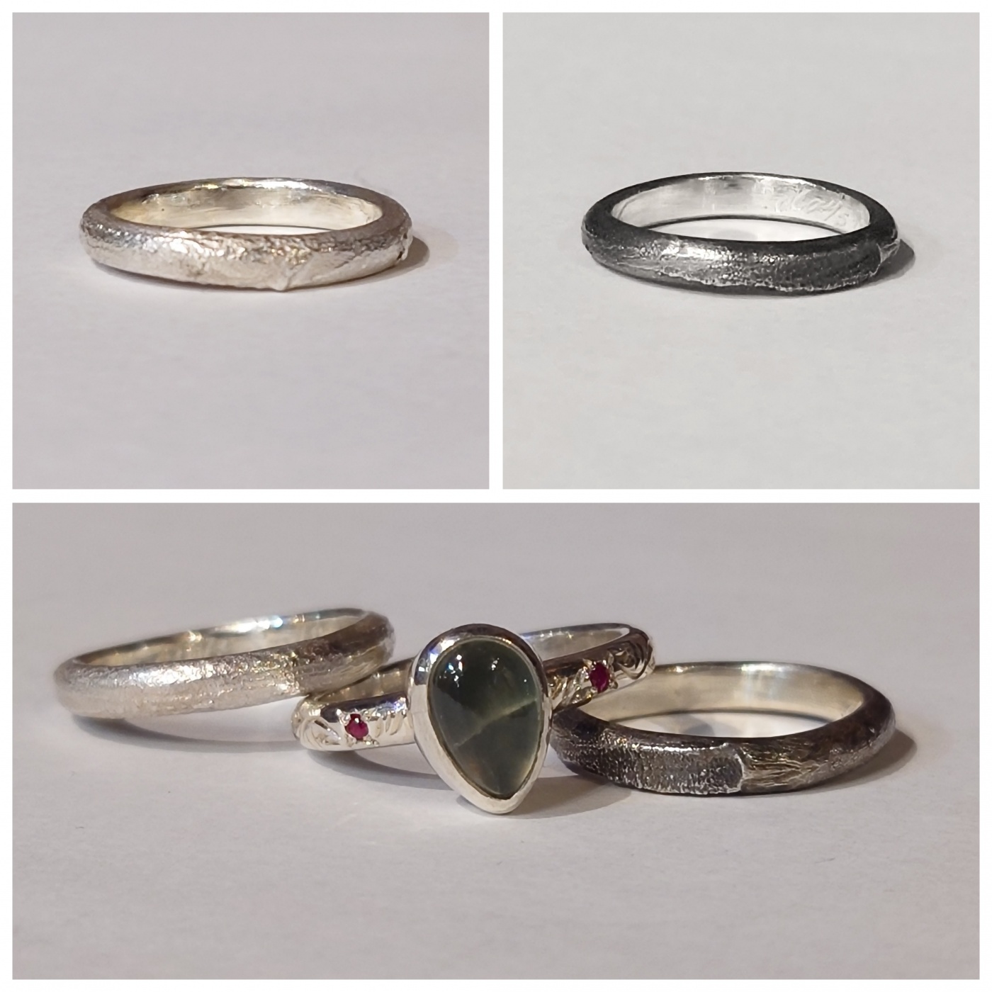 それぞれのリングの対比も楽しめ合わせる天然石によってまた違った表情を見せてくれるのも魅力的です♡