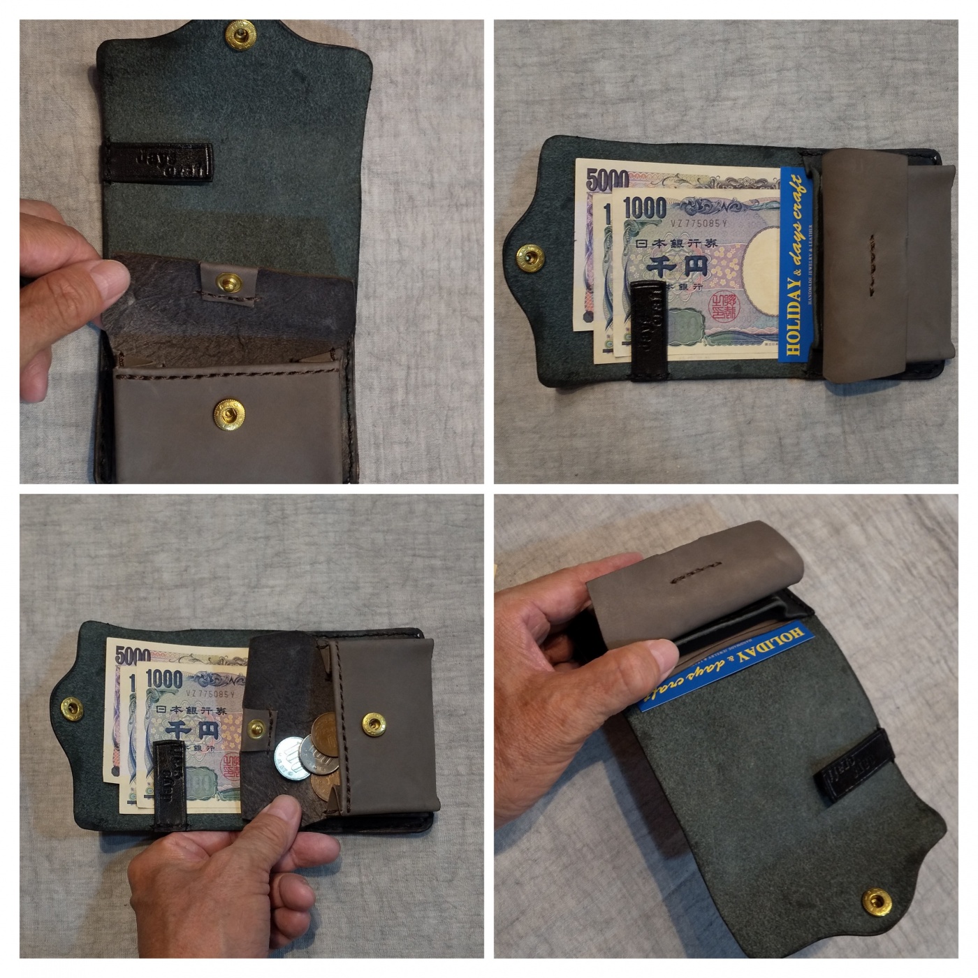 days craftのS-PURSE。お札・小銭・カードが入る、手のひらサイズのお財布です。