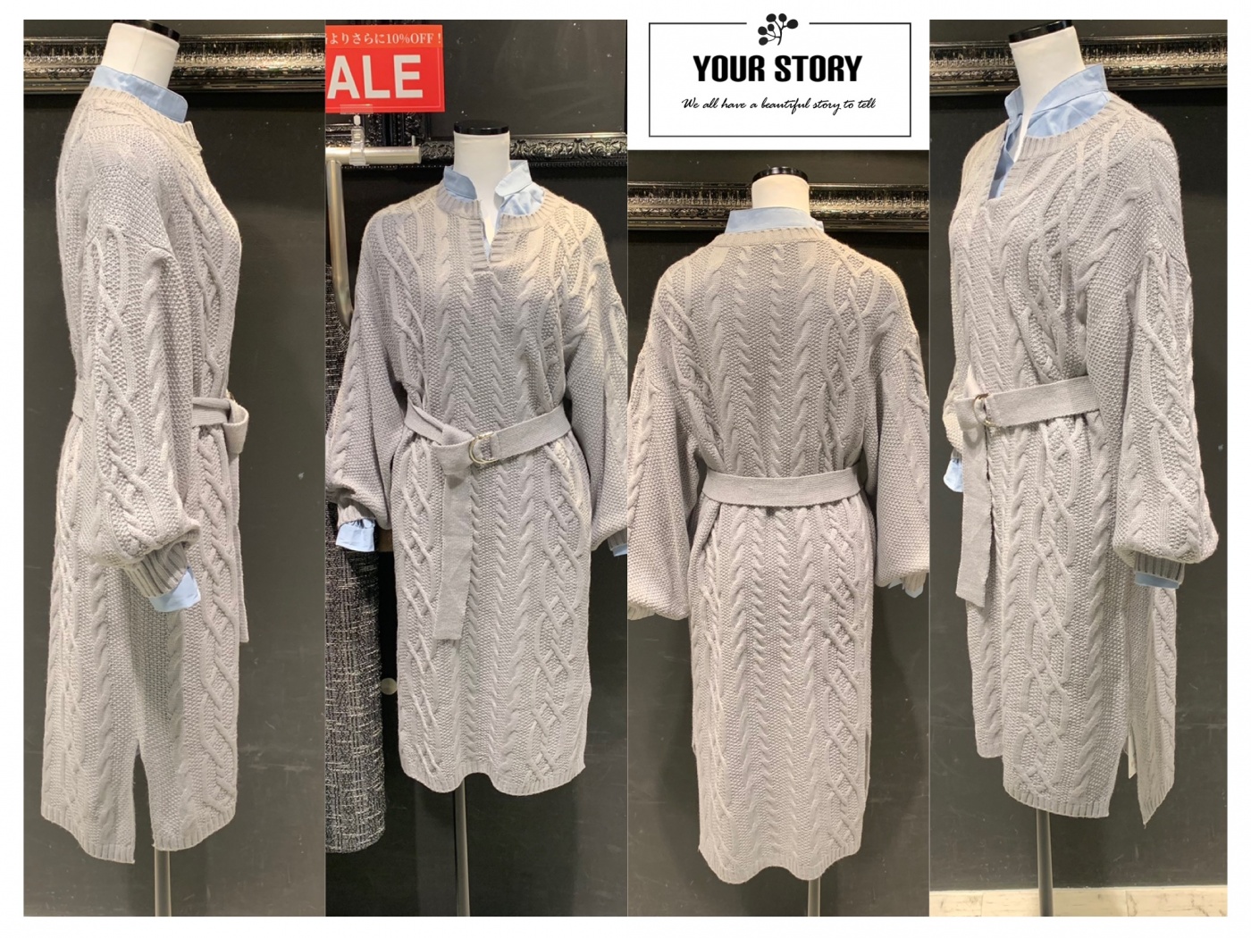今日は、スリットネックのケーブルニットワンピースをご紹介します!