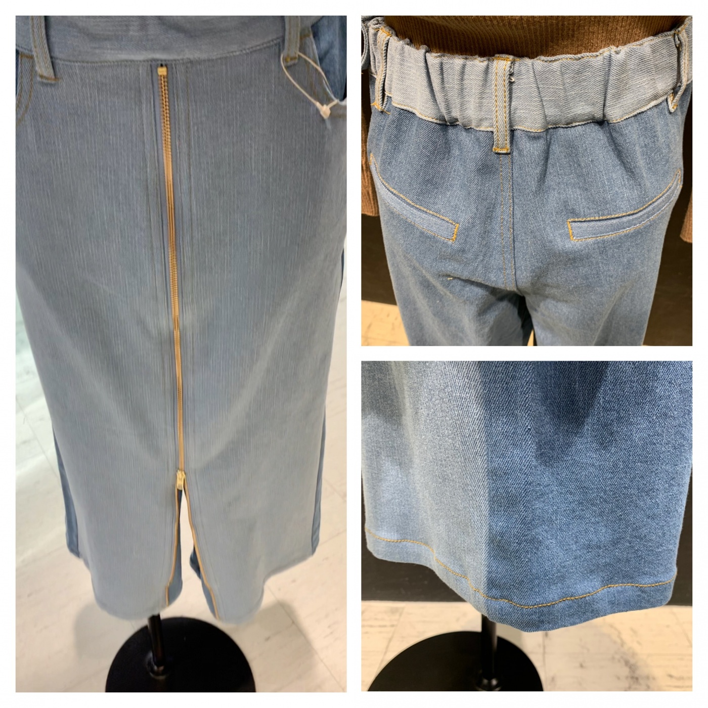 ゴールドジッパー使いのデニムワイドパンツです。