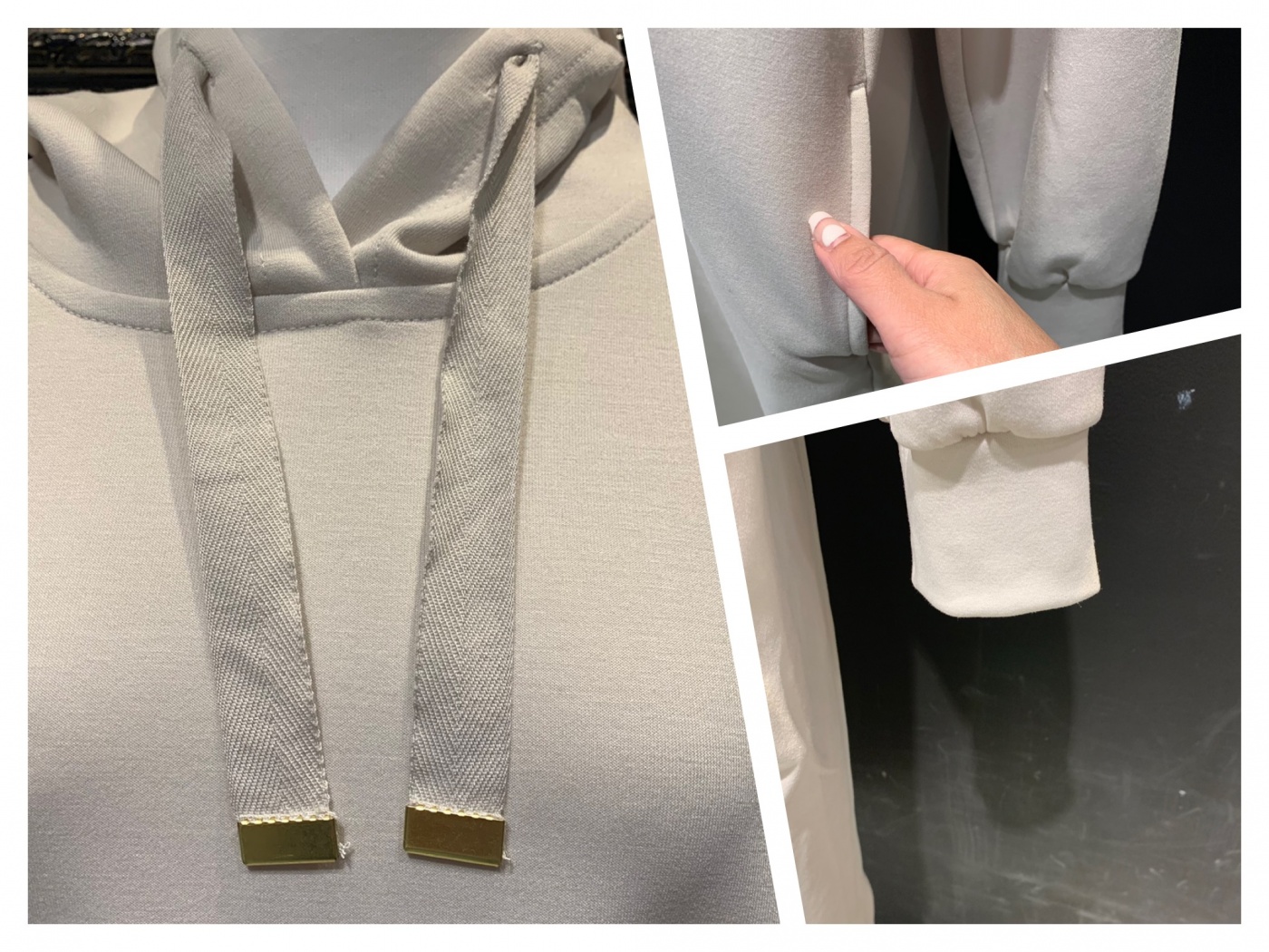 両サイド内側の紐をしめて裾まわりにギャザーを作れます。