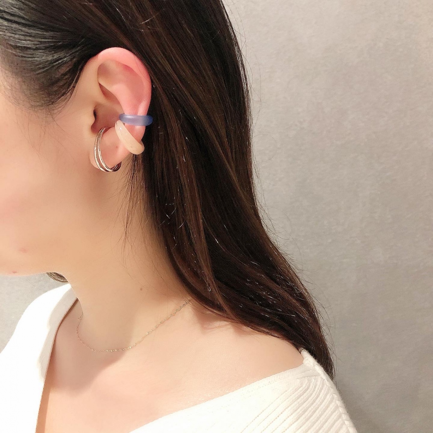 マーブル模様や温かみのあるマットな質感、透明感があり瑞々しい艶感など、表情の異なる樹脂のカフスが耳周りを華やかに。