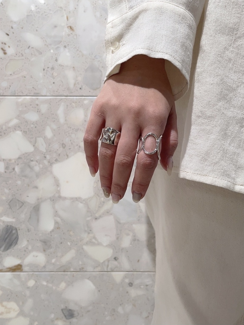 シルバー素材の重厚感と抜け感のバランスがスタイリッシュな佇まい。