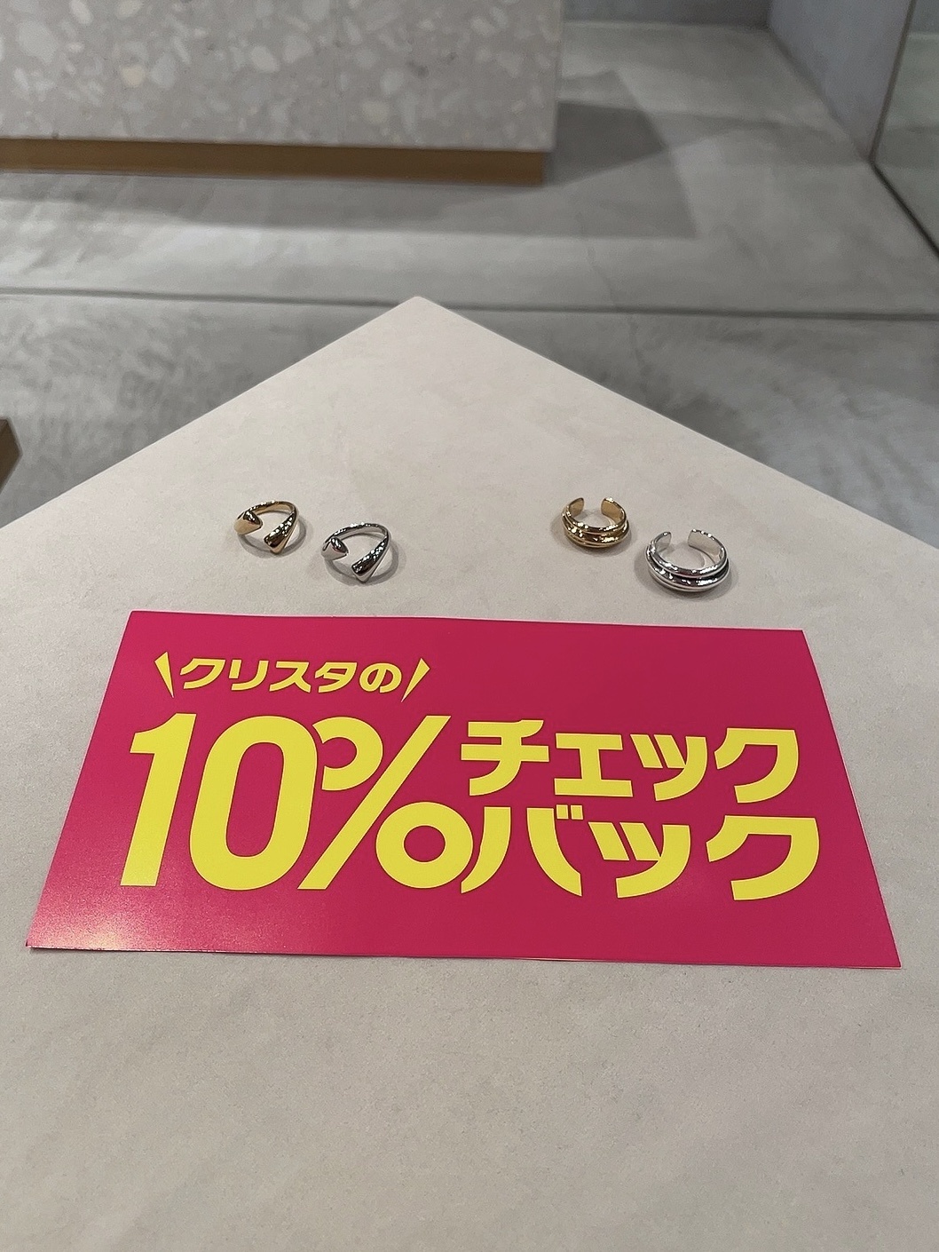 2021.10.08 アクセサリージュエッテ 10%チェックバックキャンペーン 開催! #期間限定 # 10%チェックバックキャンペーン #Jouete #ジュエッテ #Jewelry #ジュエリー 10月8日(金)〜 10月11日(月)に クリスタ長堀にて、10%チェックバックキャンペーンを開催いたします!リング、ブレスレットも多数入荷しております。ご来店お待ちしております。 期間中、クリスタ長堀の各ショップで発行されたレシート合計5,000円ごとに500円分のクリスタ長堀お買物券(金券)をプレゼント! SHARE 表示価格は記事公開日時点のものです。 このショップのニュース一覧へ アクセサリージュエッテ 営業時間11:00-21:00 (日曜日は20:30まで) 電話06-6282-2045 エリアファッションタウン SHOP PAGE RECENT NEWS 2025.10.23 ジュエッテ2025 WINTER LIMITED 2025.10.13 ジュエッテColor Perl 2025.08.06 ジュエッテPick 1 piece! 2025.07.06 ジュエッテNew arrival