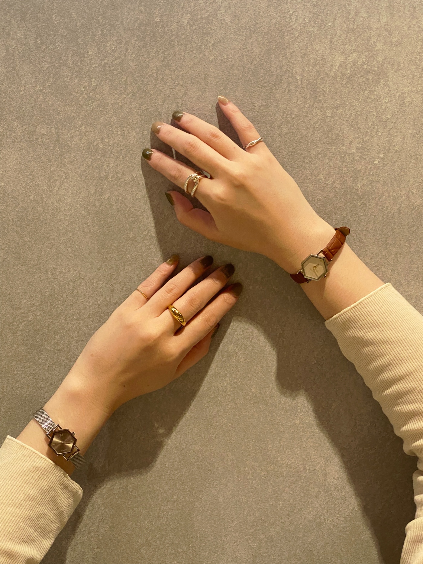 個性輝く六角形フェイスのタイムピース。