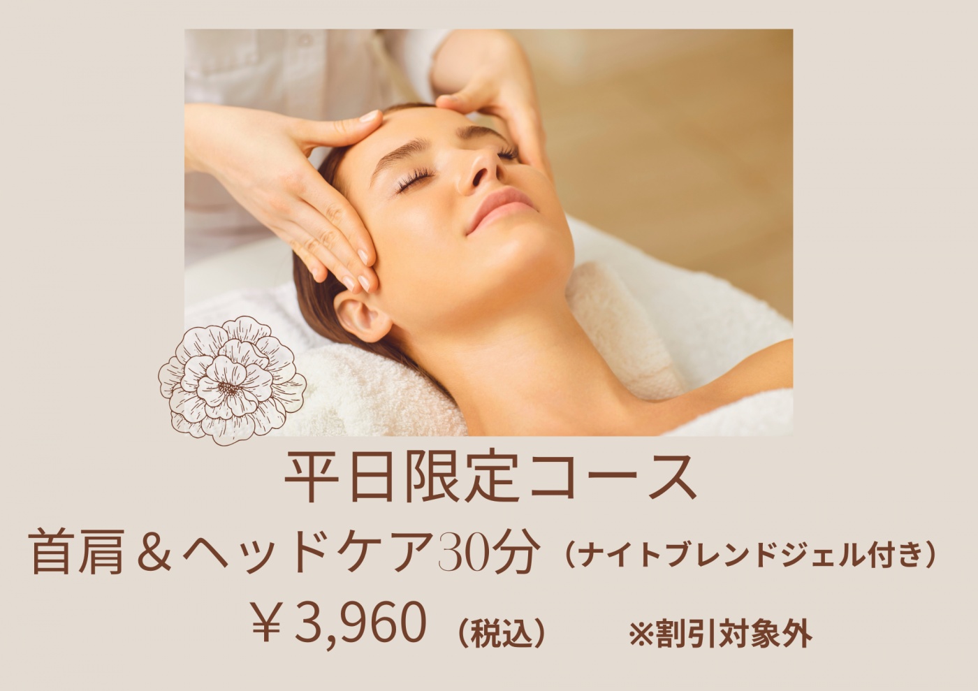 平日限定コース「首肩&ヘッドケア30分(ナイトブレンドジェル付き)」