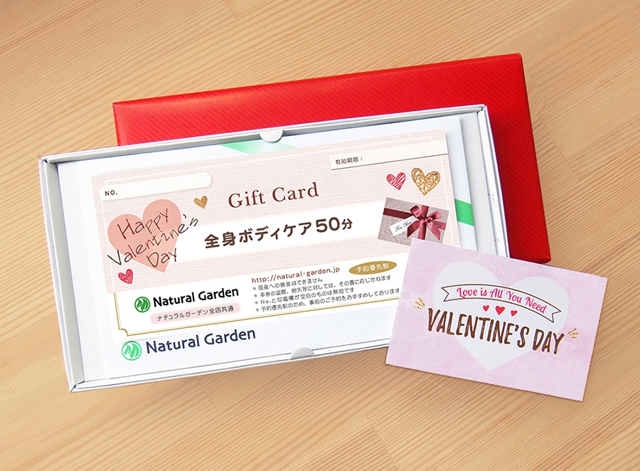 #リラクゼーション #ナチュラルガーデン #naturalgarden #マッサージ #リンパマッサージ #フットマッサージ #ヘッドマッサージ #マッサージ券 #ギフト券 #期間限定 #男性限定 #バレンタイン #バレンタインギフト #癒しのギフト