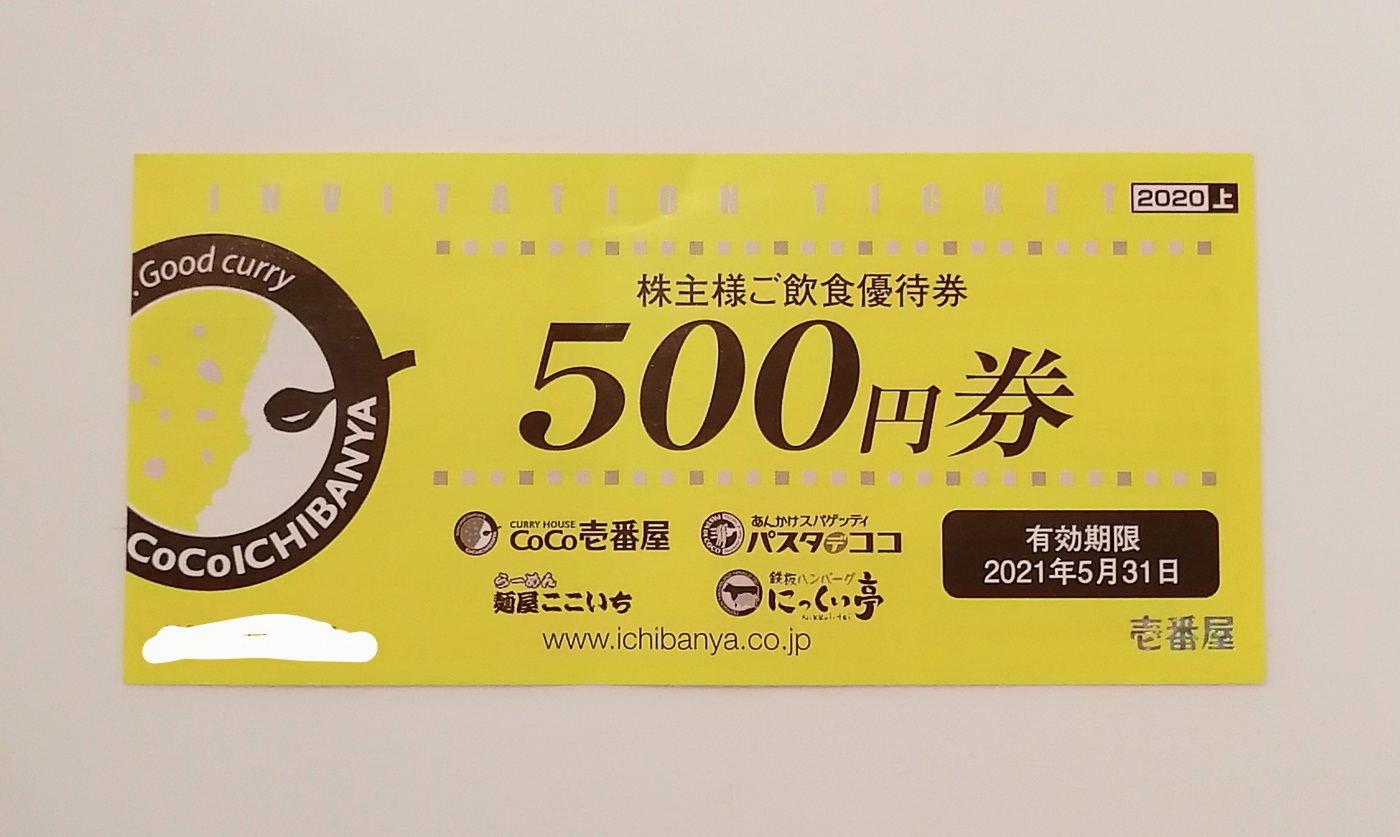 CoCo壱番屋の株主優待券のご紹介です☆彡